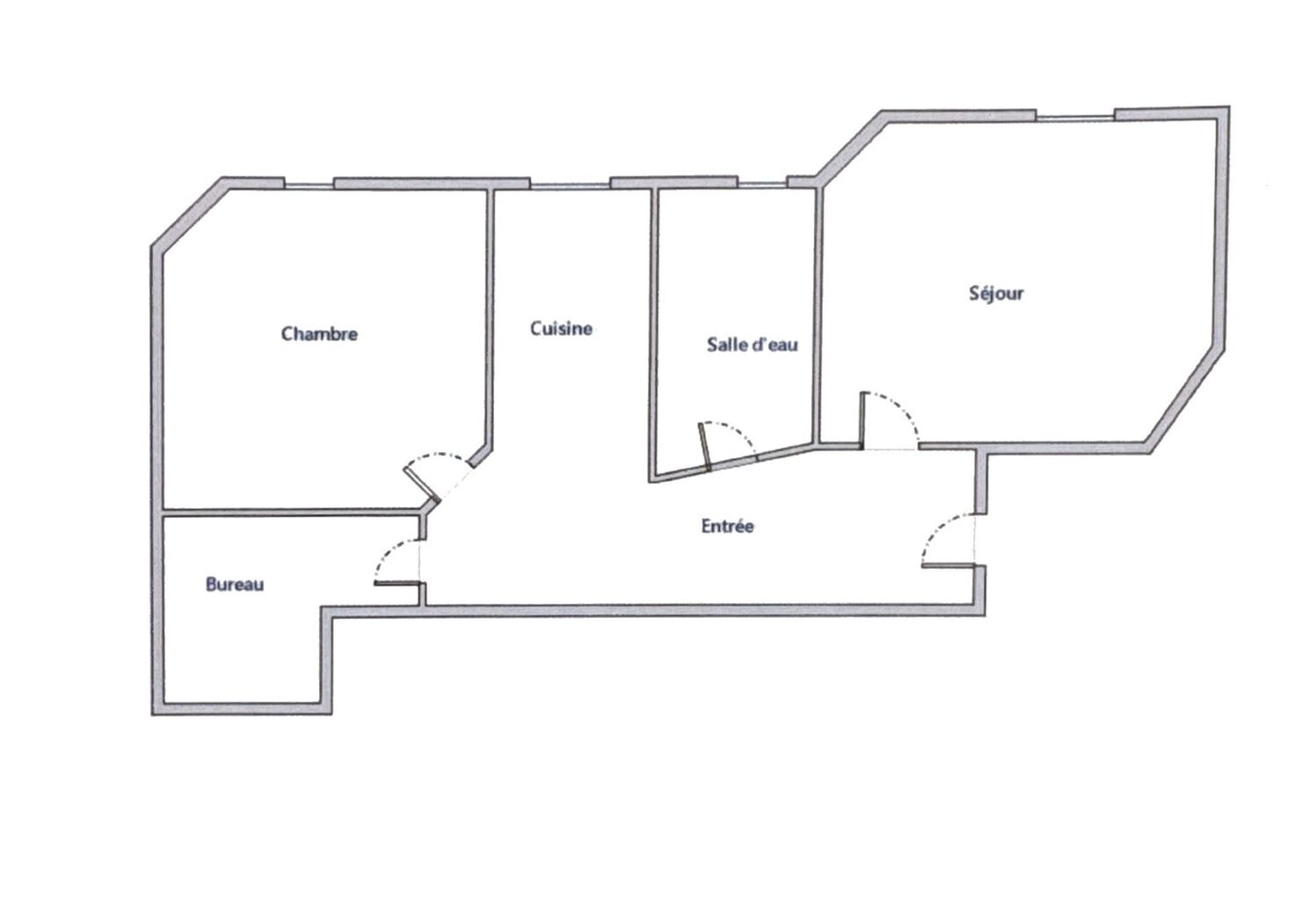 F2 : entrée, séjour, cuisine équipée une chambre, dressing (4,5m2), salle d’eau wc.