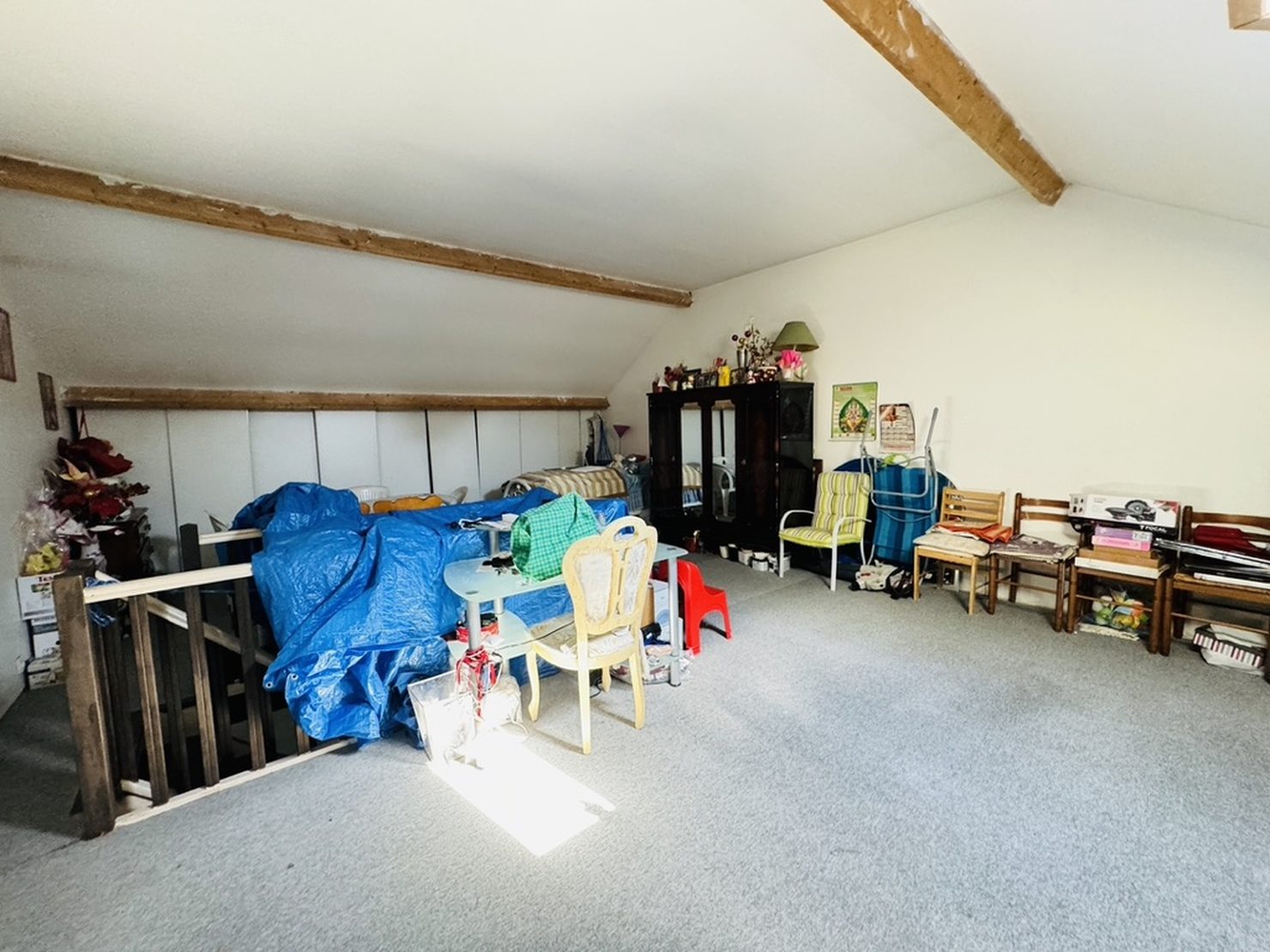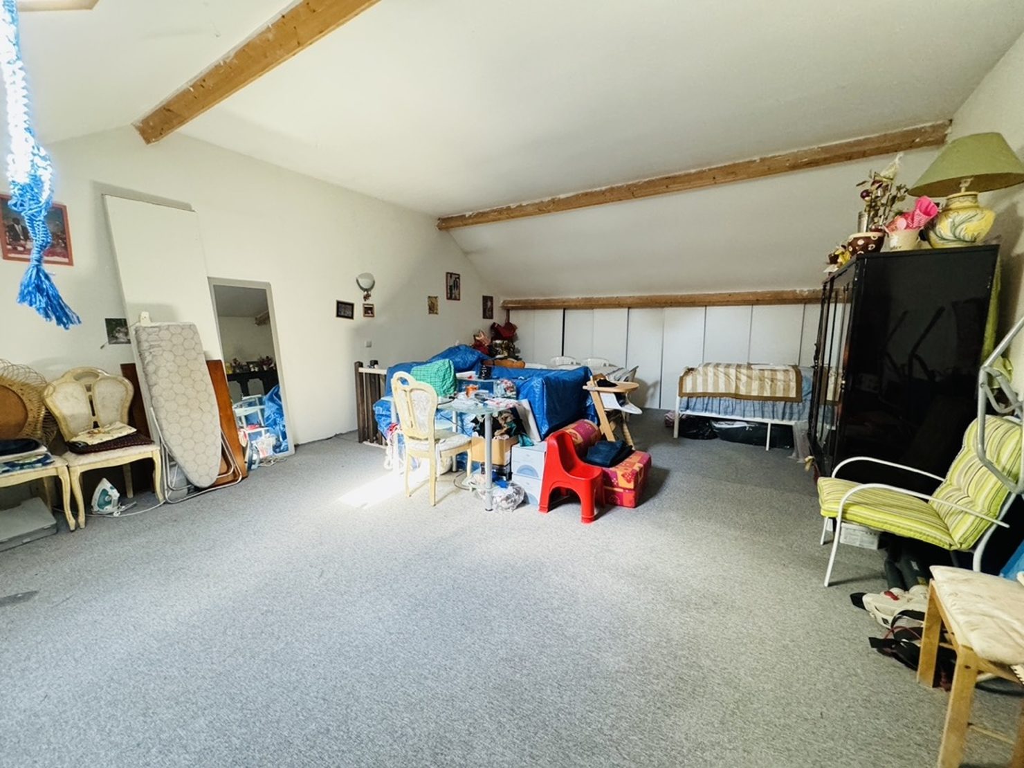 Entrée, séjour salon, grande cuisine équipée sur terrasse et jardin ( sud et sans vis à vis), wc. Au 1er : 3 belles chambres avec placard ( 19-15-13 m2), salle d’eau wc, dressing. Au 2ème : une grande pièce de 45 m2 (possibilité de faire 2 chambres et une salle d’eau). Jardin clos, accès voitures.