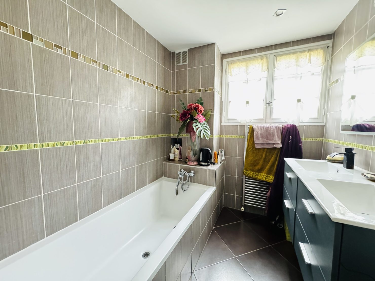 Entrée, séjour salon cheminée (34m2) sur terrasse et jardin, cuisine équipée, une chambre, wc. Au 1er : grand dégagement, 4 belles chambres, bureau, salle de bains, wc. Sous sol total aménagée (carrelé, isolé et chauffé) : salle de jeux avec coin cuisine et salle d’eau (30m2), garage 2 voitures, terrain 365 m2
