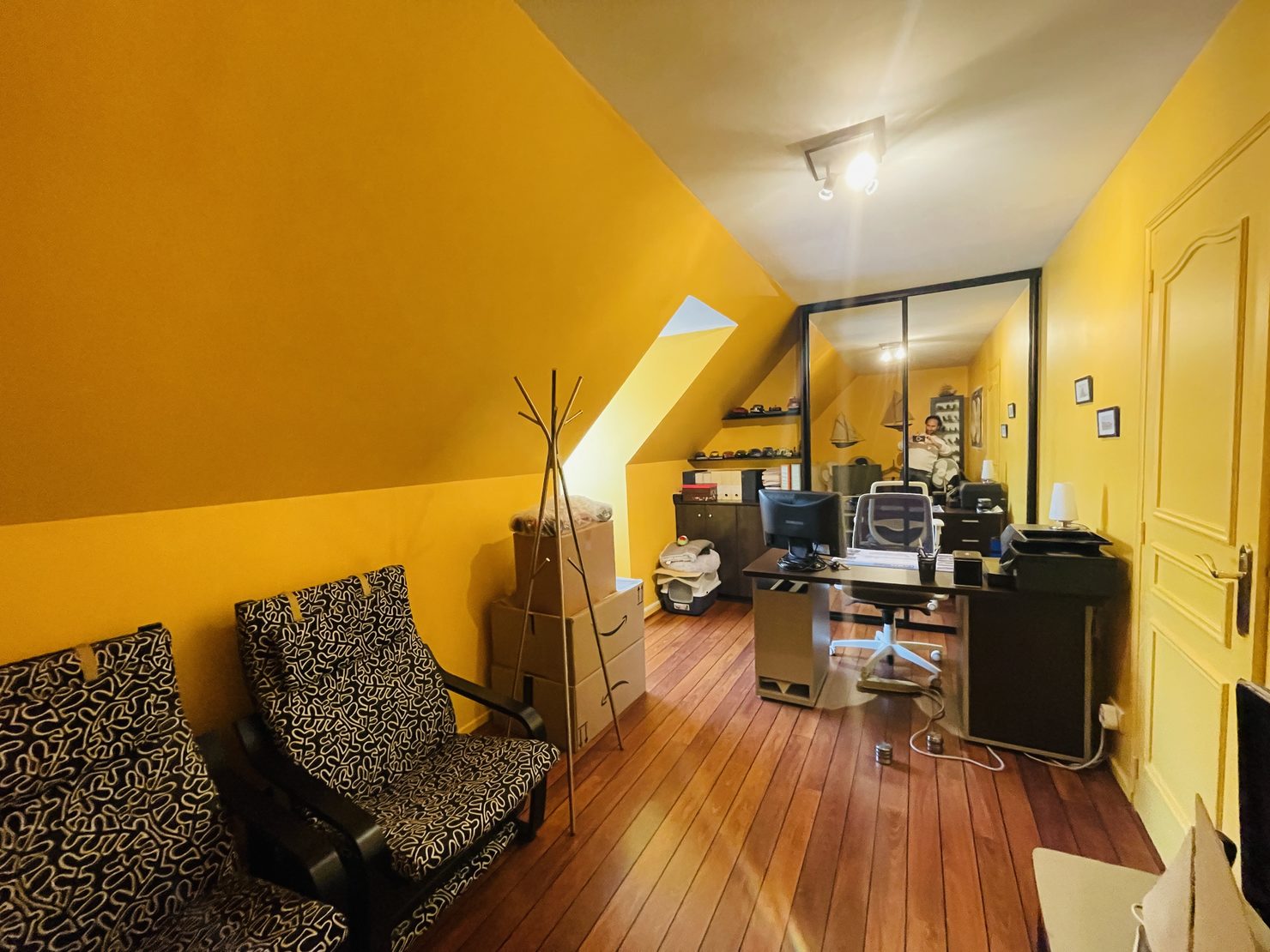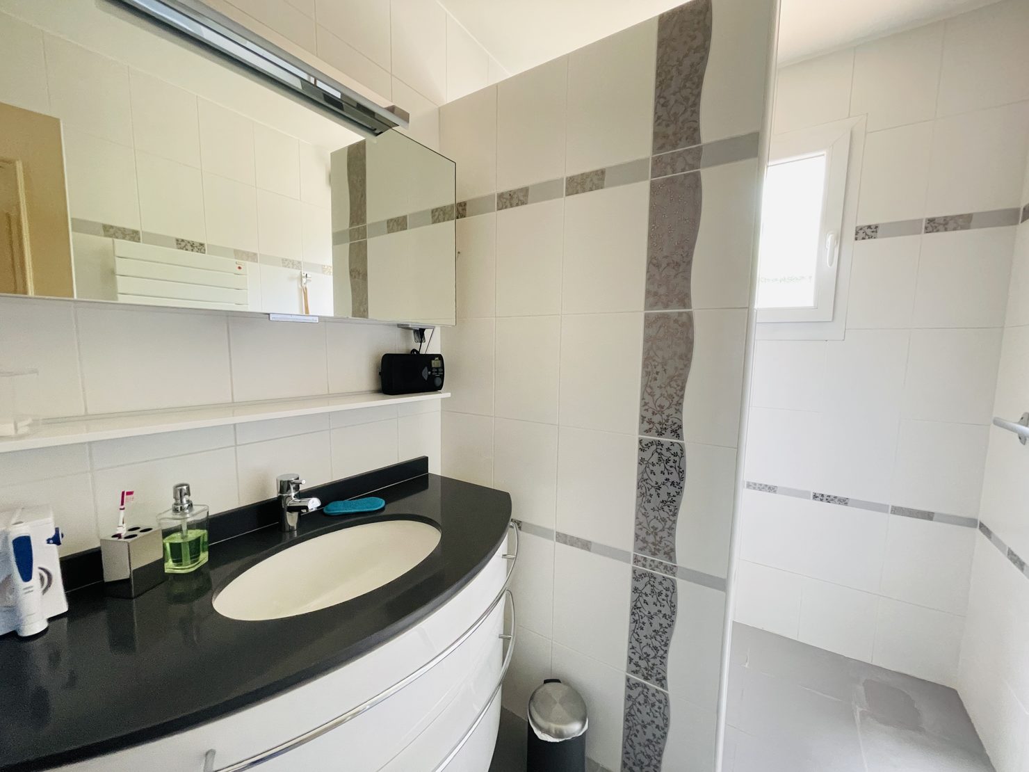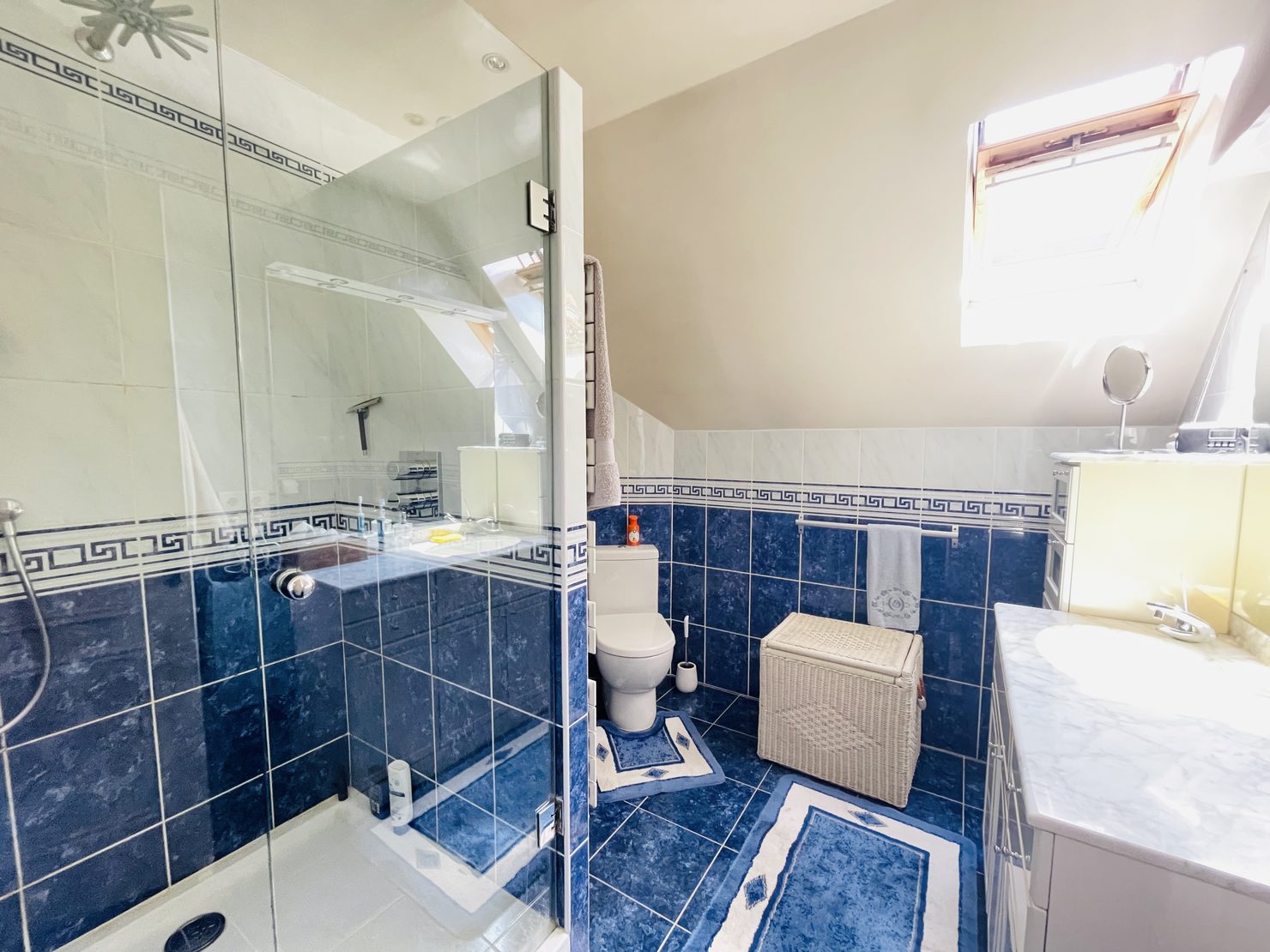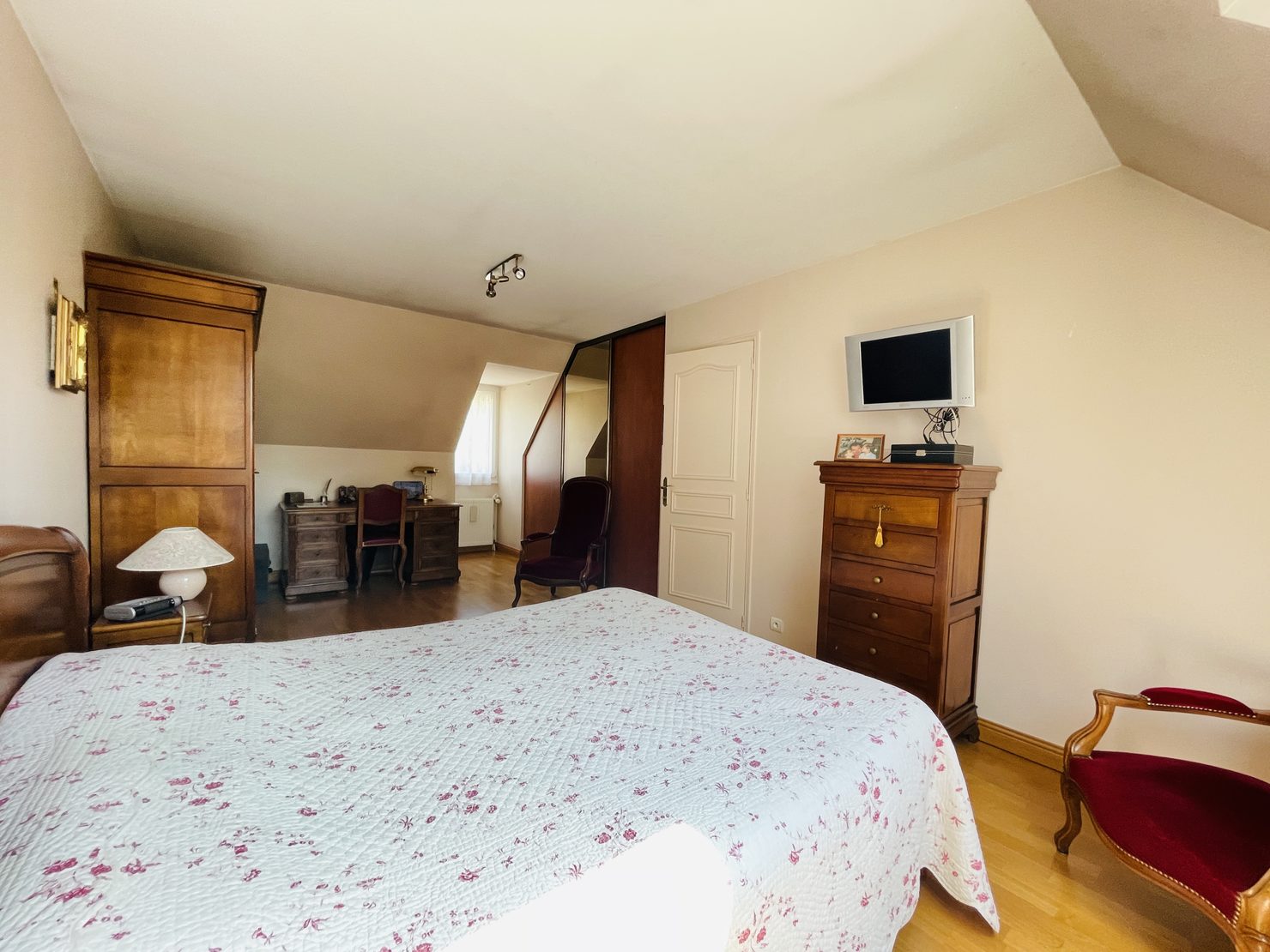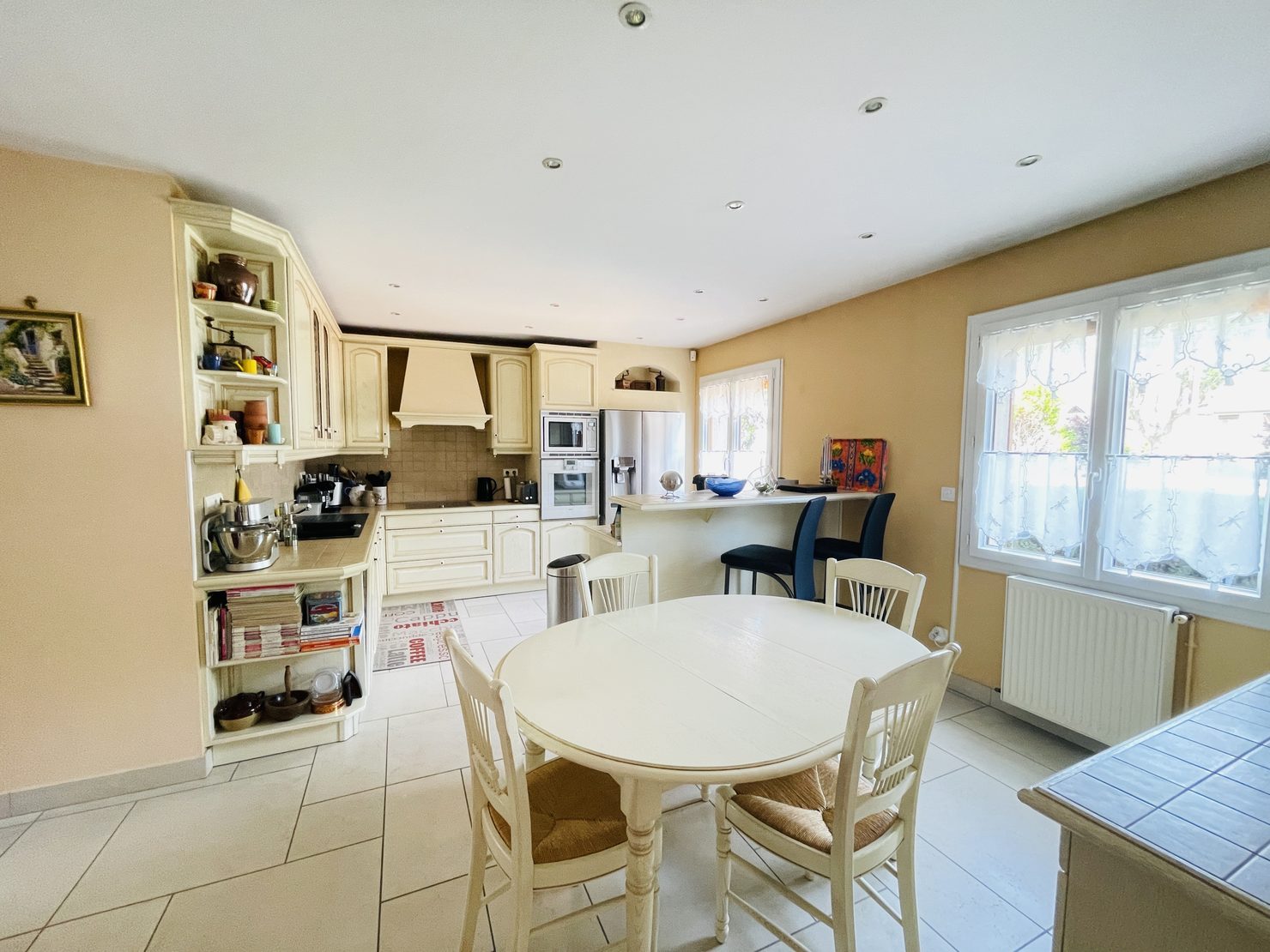 Entrée avec placard, séjour salon cheminée (33m2) sur terrasse et jardin (sud et sans vis à vis), cuisine équipée avec coin repas (22m2), une chambre avec placard, salle d’eau avec douche à l’italienne, wc. Au 1er : 3 belles chambres dont 1 avec dressing (25-15-12 m2), salle d’eau wc. Sous sol total : garage 3 voitures, bureau, buanderie. Terrain 323 m2