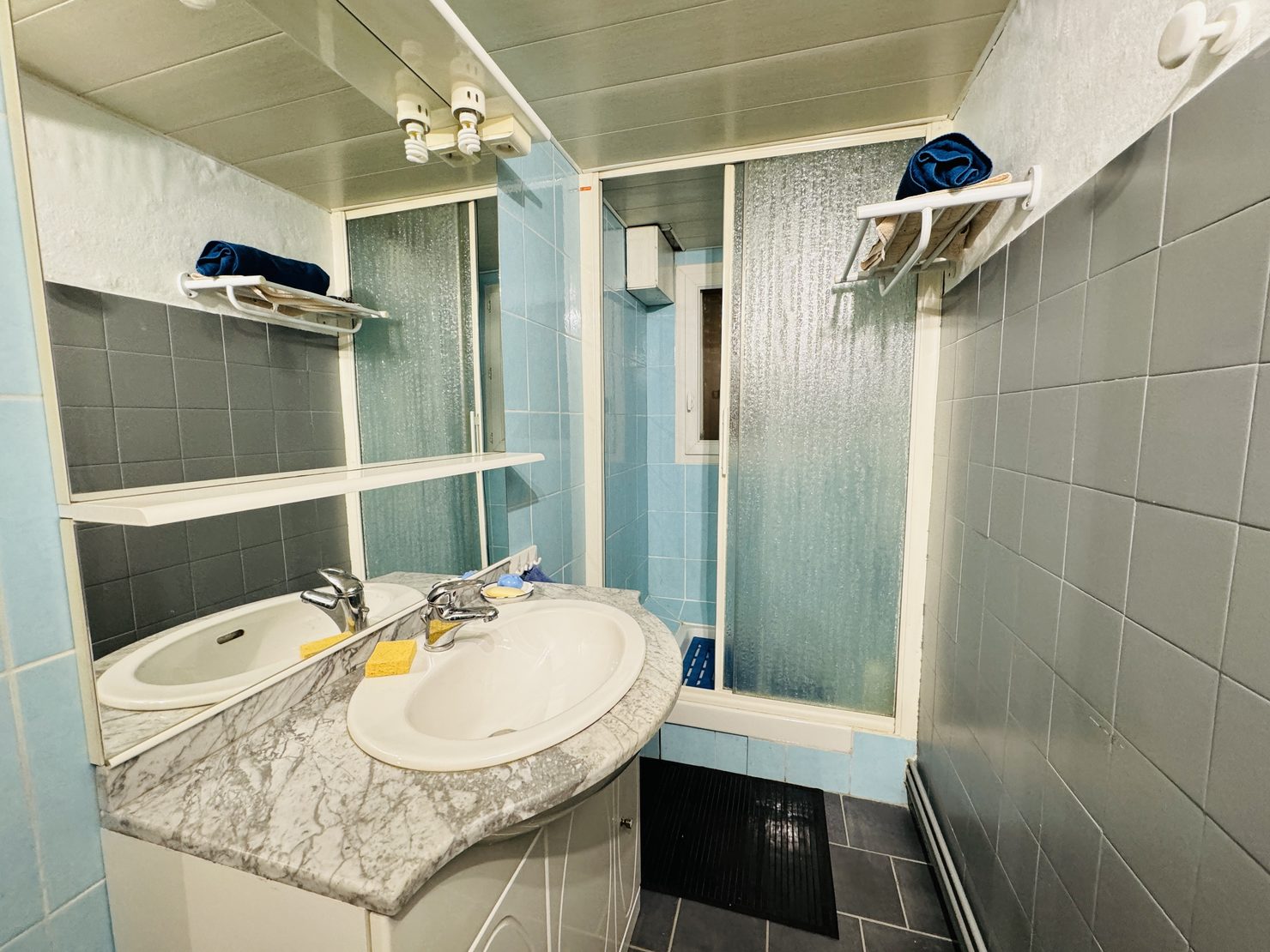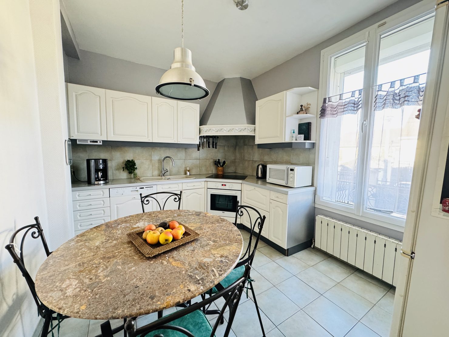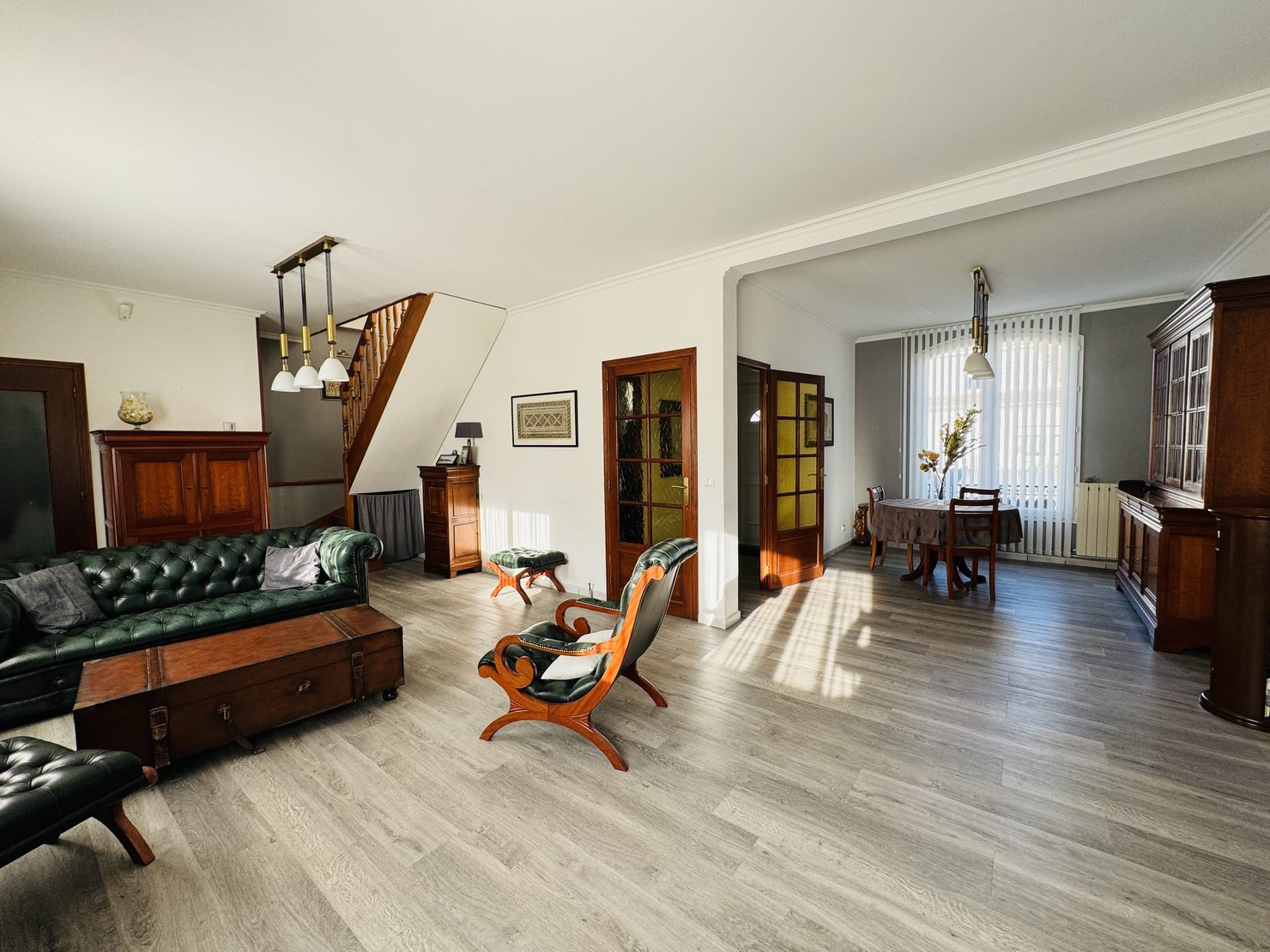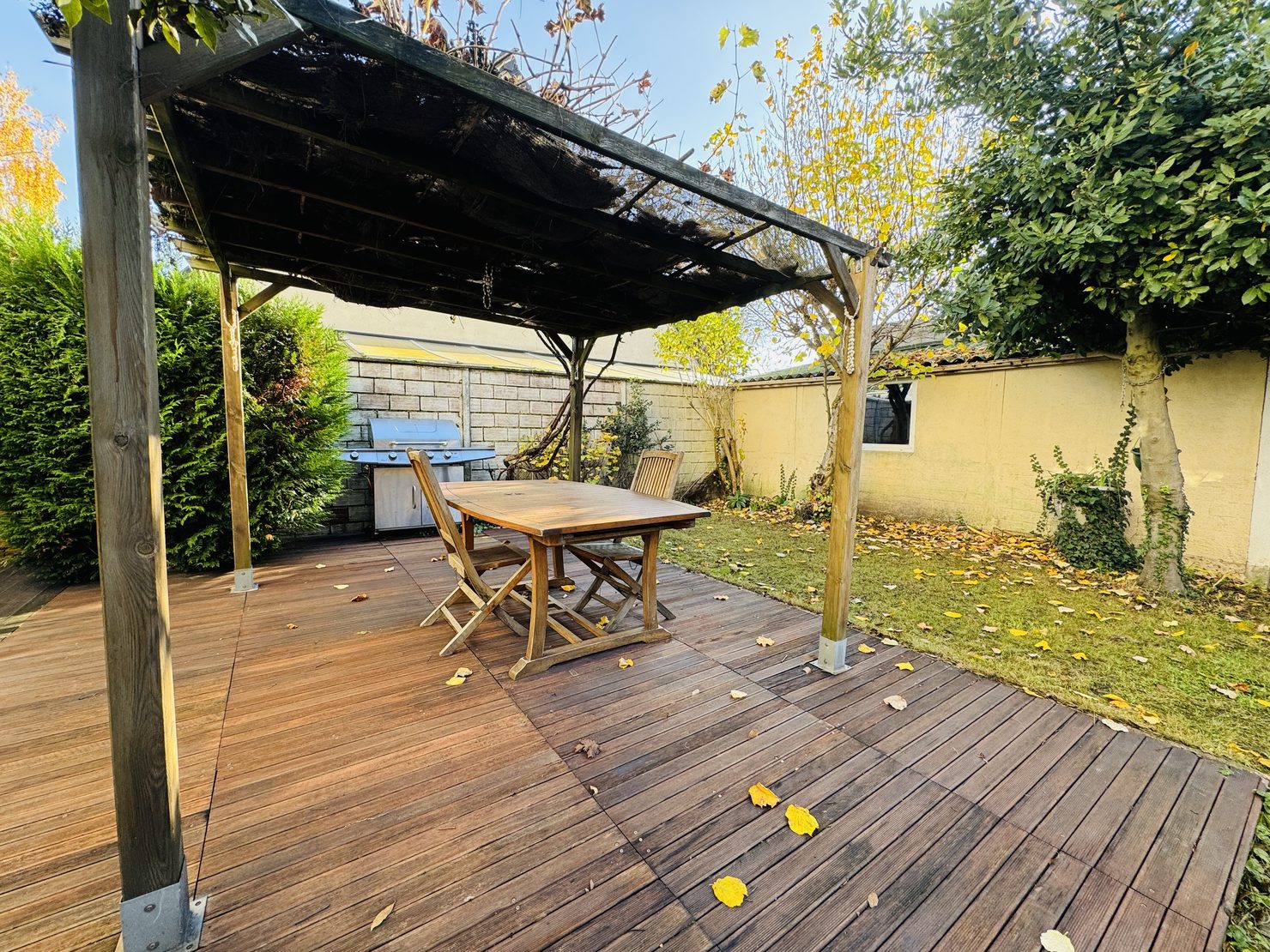 Entrée, séjour salon cheminée (39m2), cuisine équipée, wc. Au 1er : grand dégagement – bureau, 3 belles chambres avec placards, salle de bains, wc. Rez de jardin : studio de 30 m2 tout confort avec coin cuisine et salle d’eau, wc, atelier et garage. Terrain 250 m2 (sud et sans vis à vis) et abris de jardin en fond de parcelle.