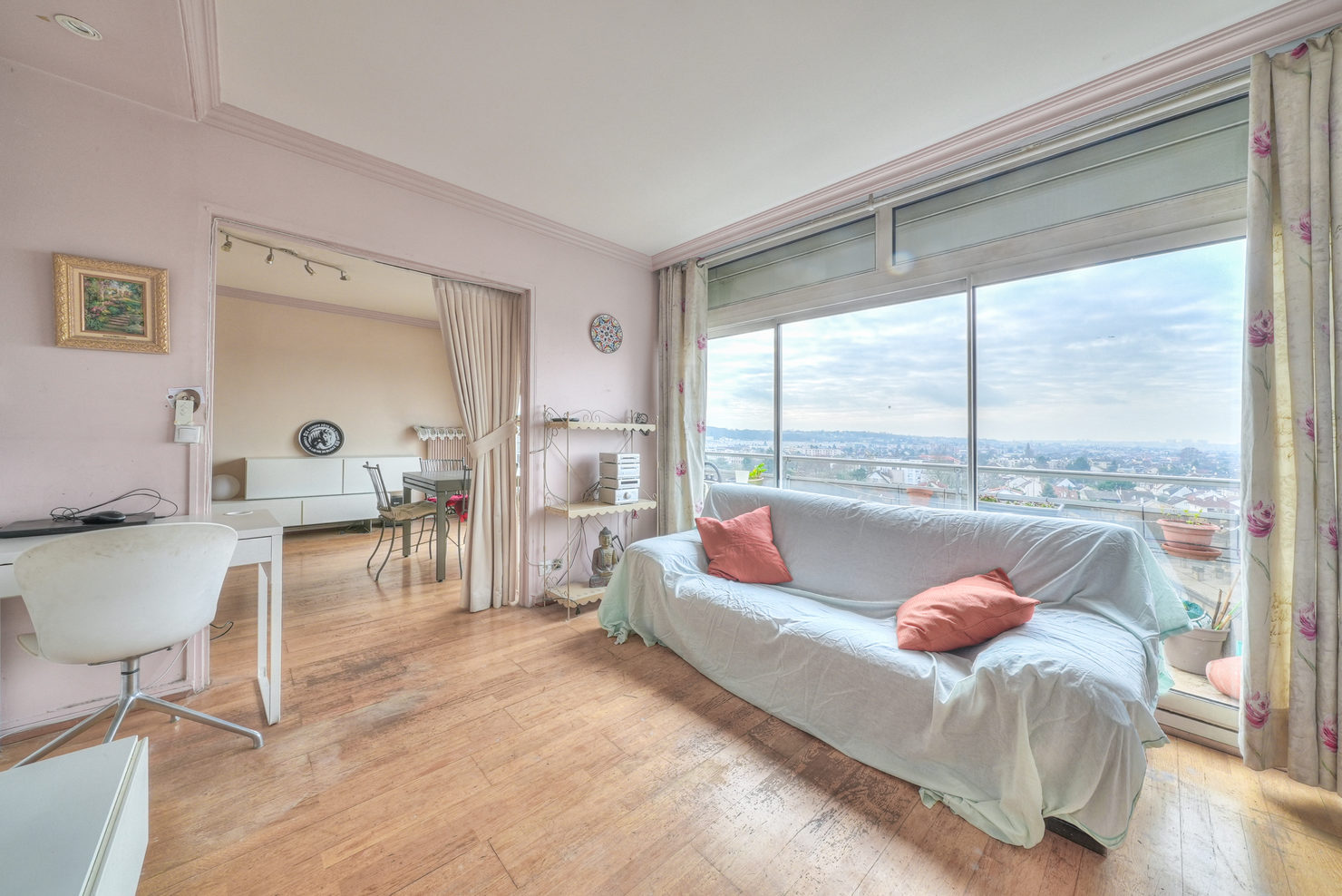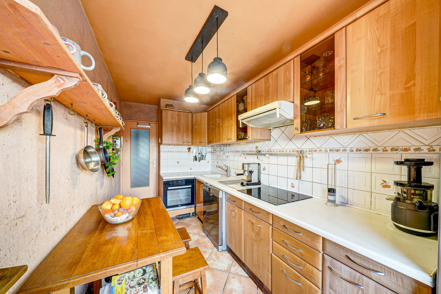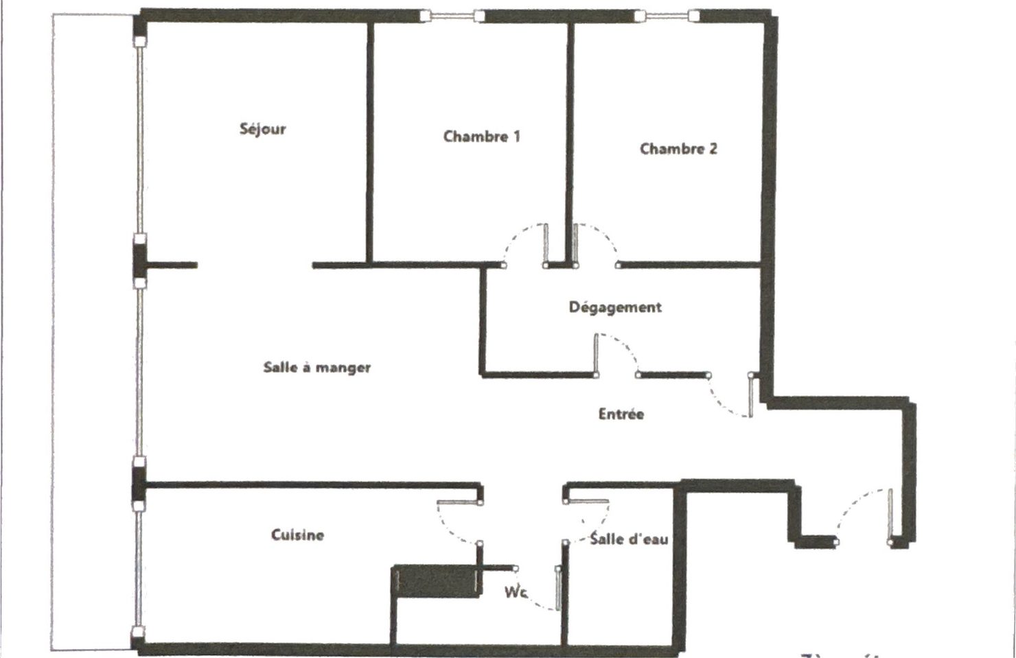 F4 : entrée, séjour salon (27m2) sur balcon (sud et sans vis à vis), cuisine équipée, 2 chambres, salle d’eau, wc, cave, parking couvert possible en location (40 € par mois)