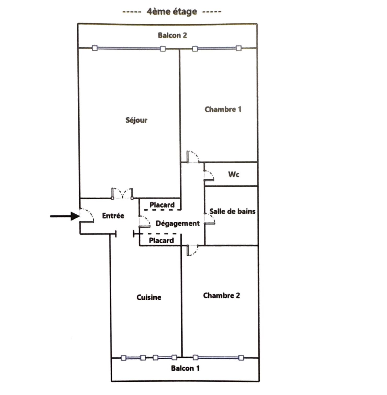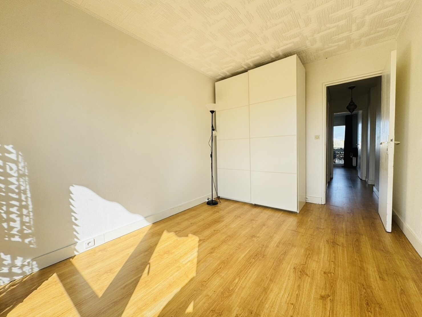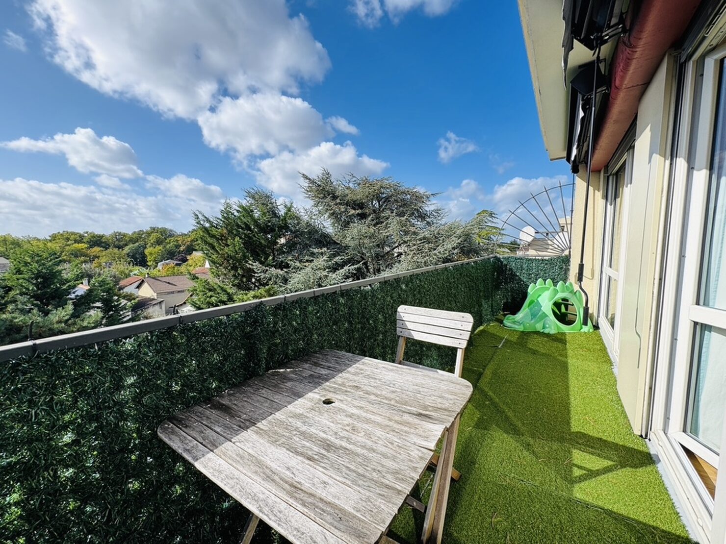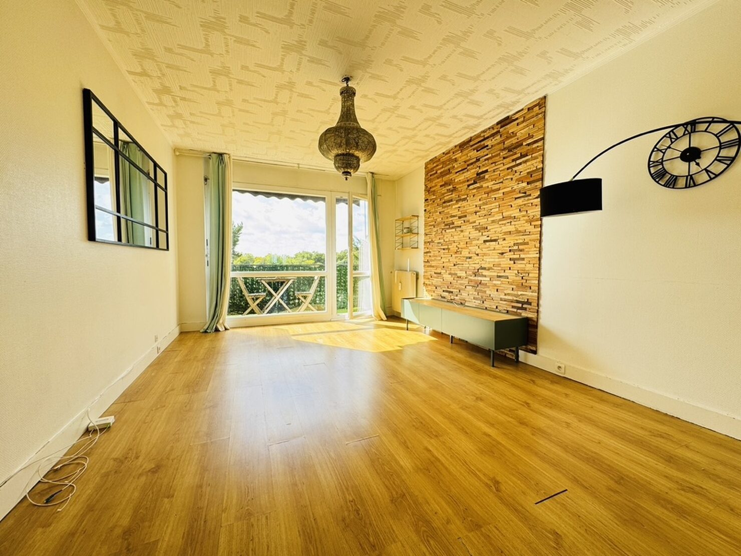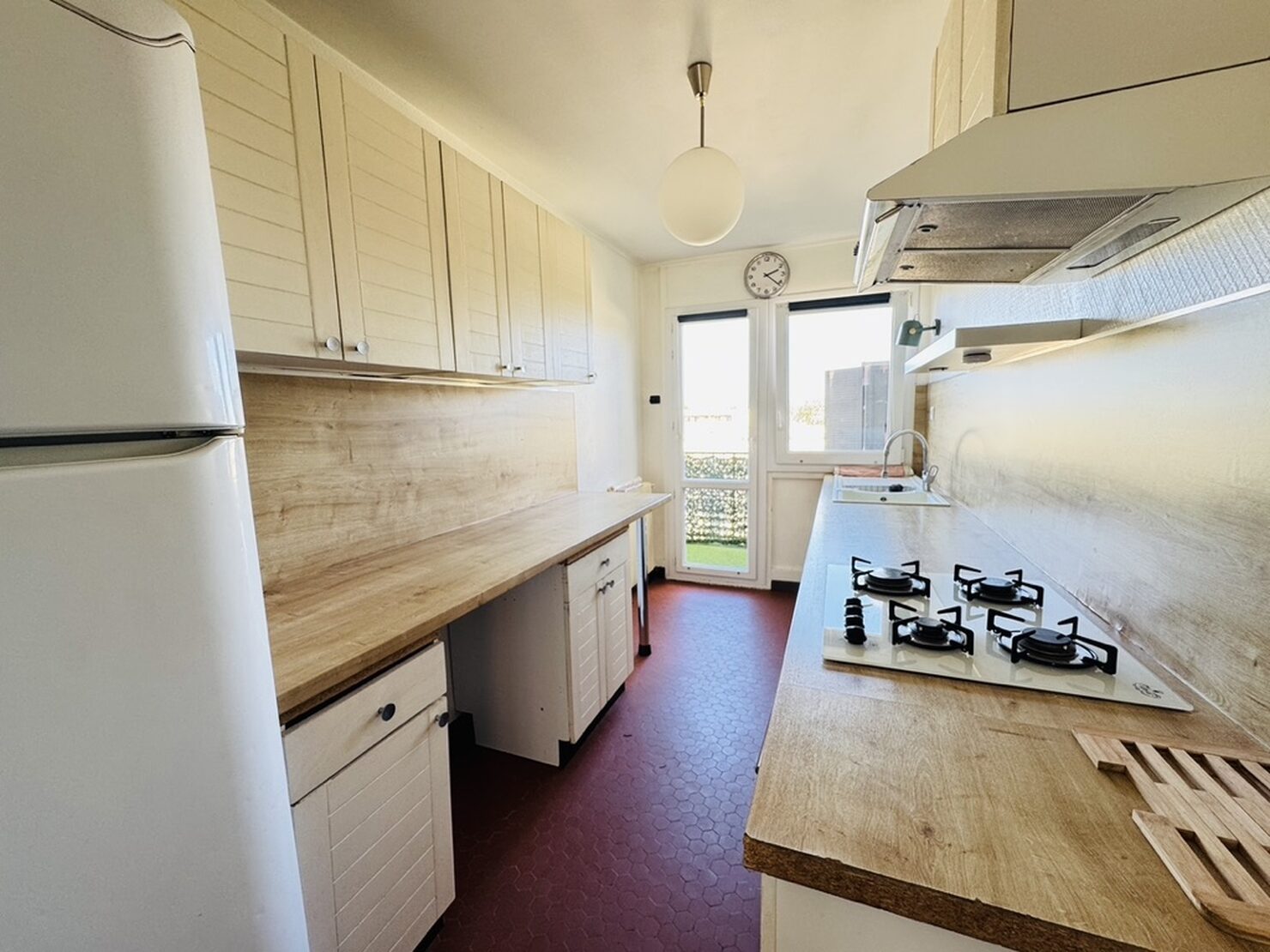 F3 : entrée, séjour sur grand balcon-terrasse ( sud et sans vis à vis ), cuisine équipée sur balcon, 2 chambres, salle de bains, wc, placard, cave, grand parking sous sol et un parking extérieur.