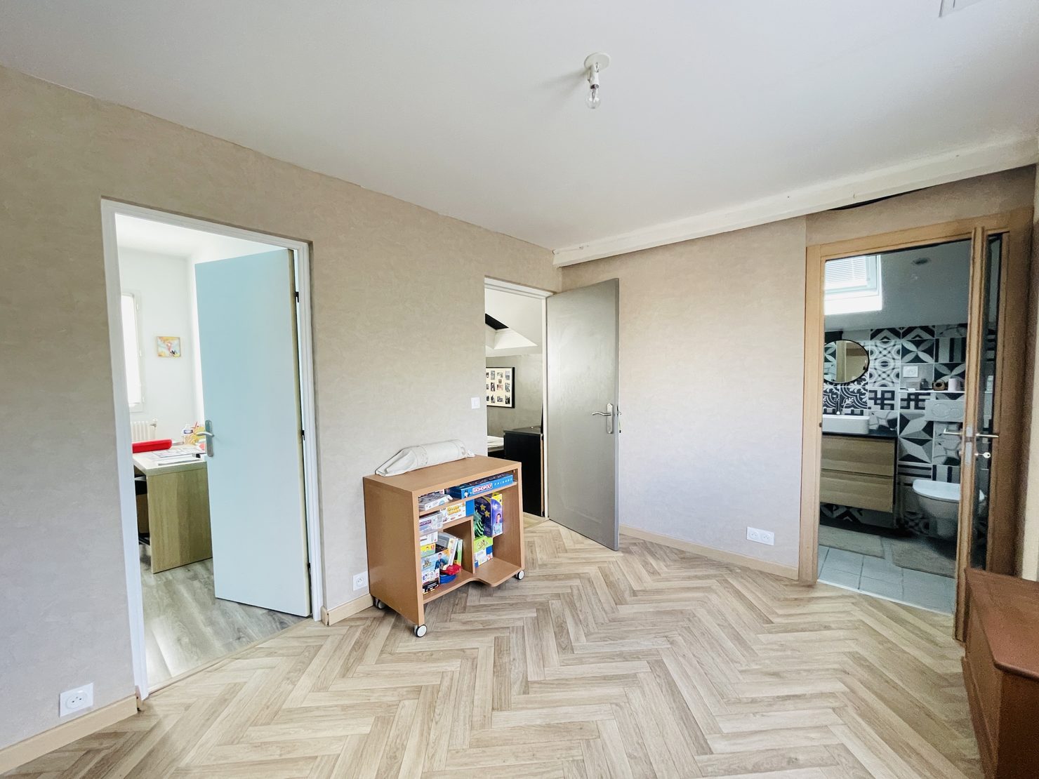 Entrée, buanderie, bureau, garage 3 voitures, atelier. Au 1er : séjour double avec cuisine US équipée (43 m2) sur terrasse et jardin, salle à manger (23m2), suite parentale avec dressing et salle d’eau avec douche à l’italienne (21m2), wc. Au 1er : grand dégagement (13m2), 2 chambres (12m2 chacune), salle d’eau wc. Terrain sans vis à vis 491 m2.