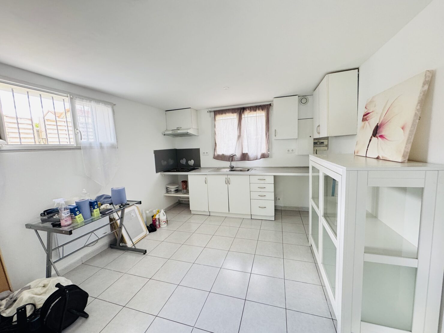 Entrée, séjour salon avec cuisine US équipée ( 35 m2), salle d’eau wc. Au 1er : dégagement, suite parentale avec salle de bains wc, 2 chambres. Rez de jardin aménagé en F2 ( 34 m2 ) tout confort avec séjour coin cuisine, une chambre, salle d’eau wc. et une buanderie. Terrain 478 m2 sans vis à vis et garage indépendant.