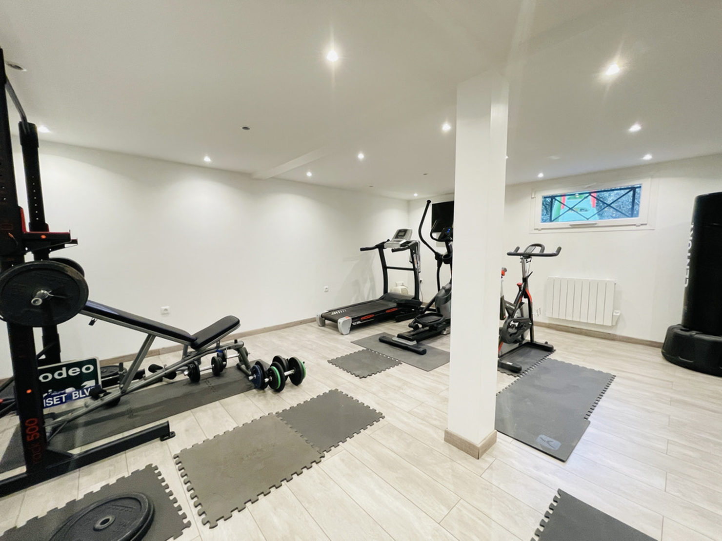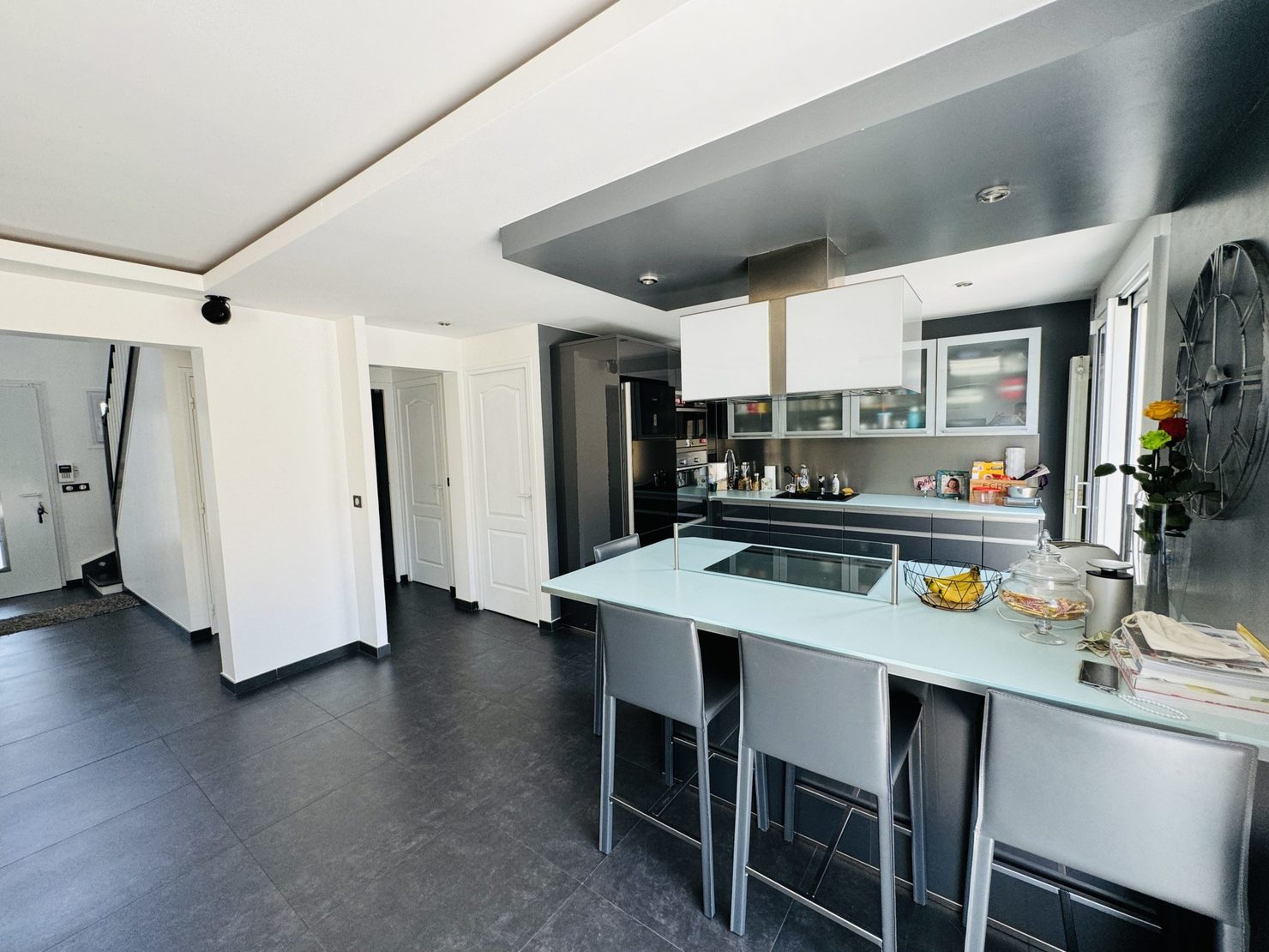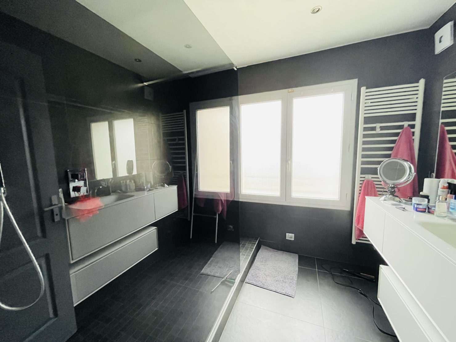 Entrée cathédrale, séjour salon cheminée avec cuisine US équipée (60m2) sur grande terrasse (45m2 sud ouest), bureau, wc. Au 1er : suite parentale avec salle d’eau douche à l’italienne et dressing (30m2), une chambre, un dressing, salle de bains, wc. Au 2ème : suite parentale avec salle d’eau wc et bureau. Sous sol total : garage 2 voitures, salle de sport ou salle de jeux (30m2). Terrain 538 m2.