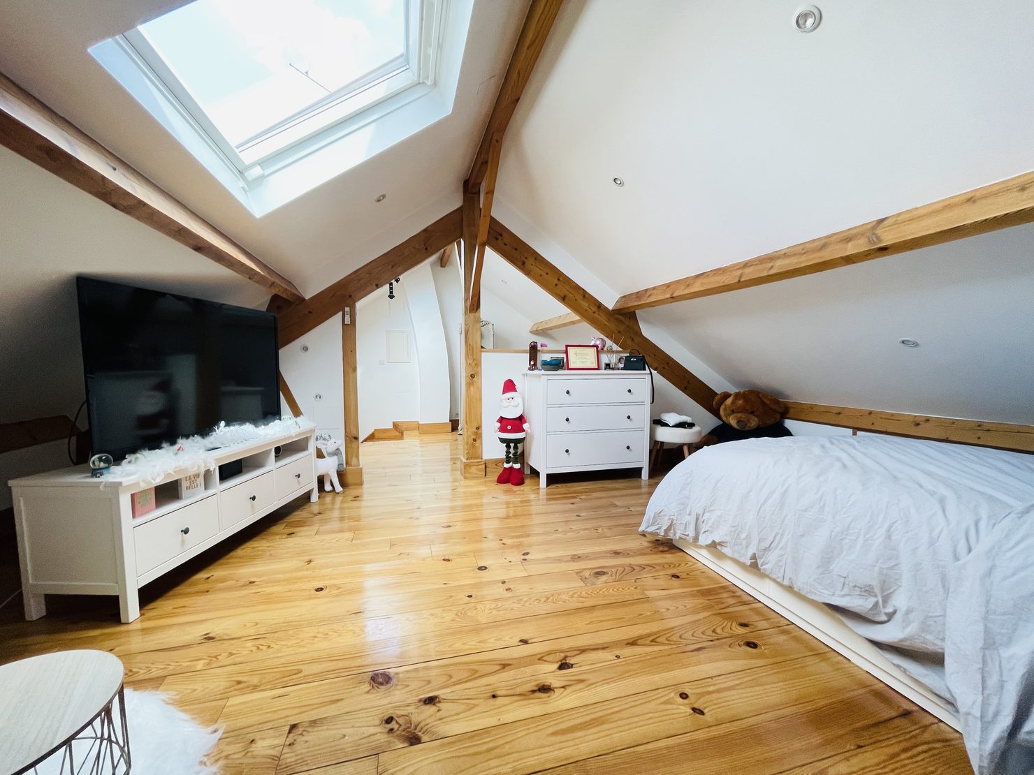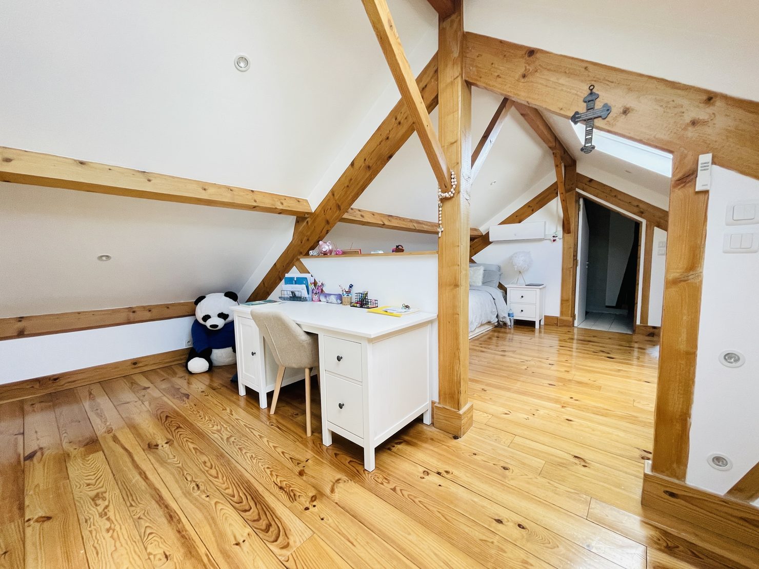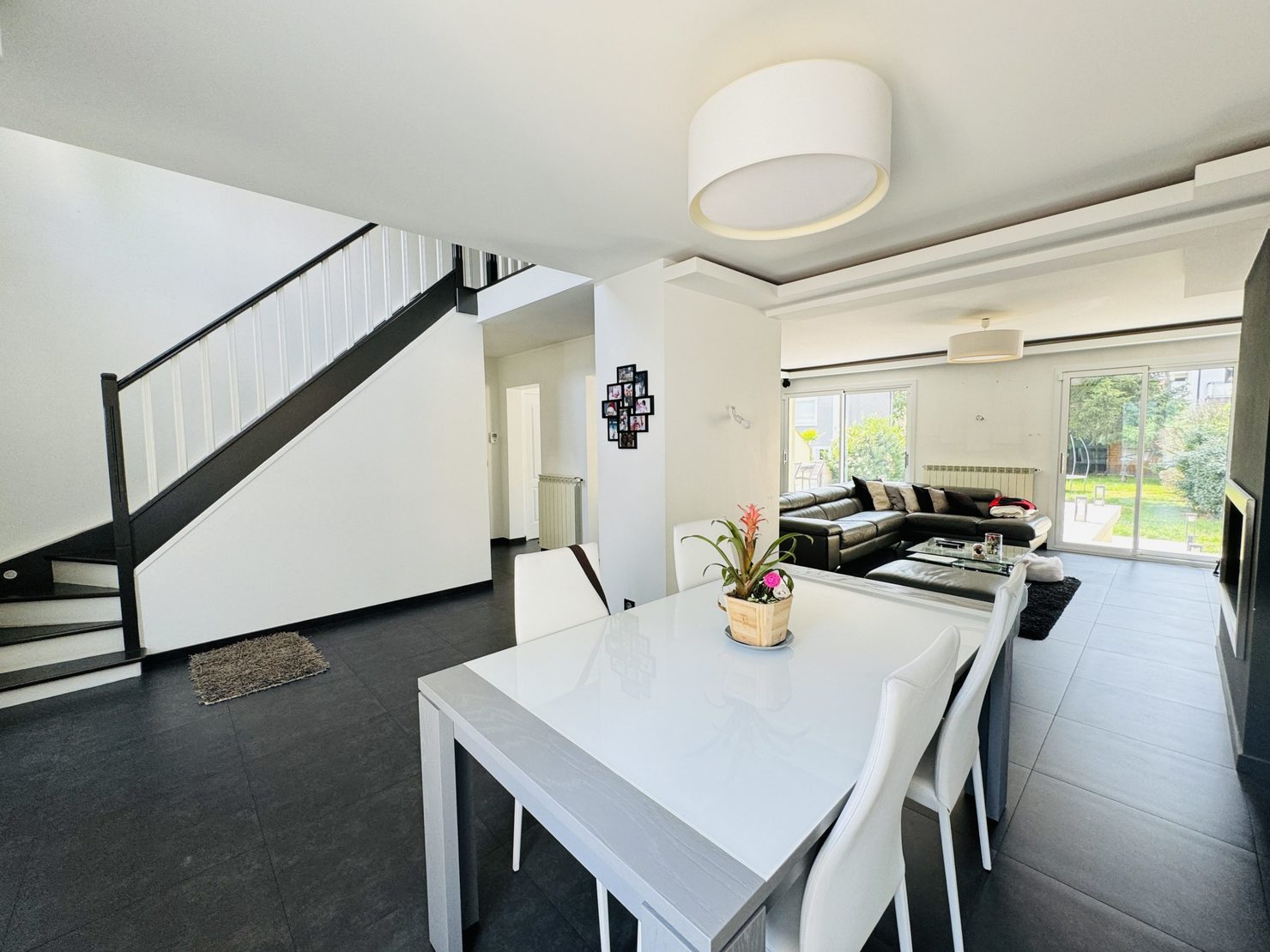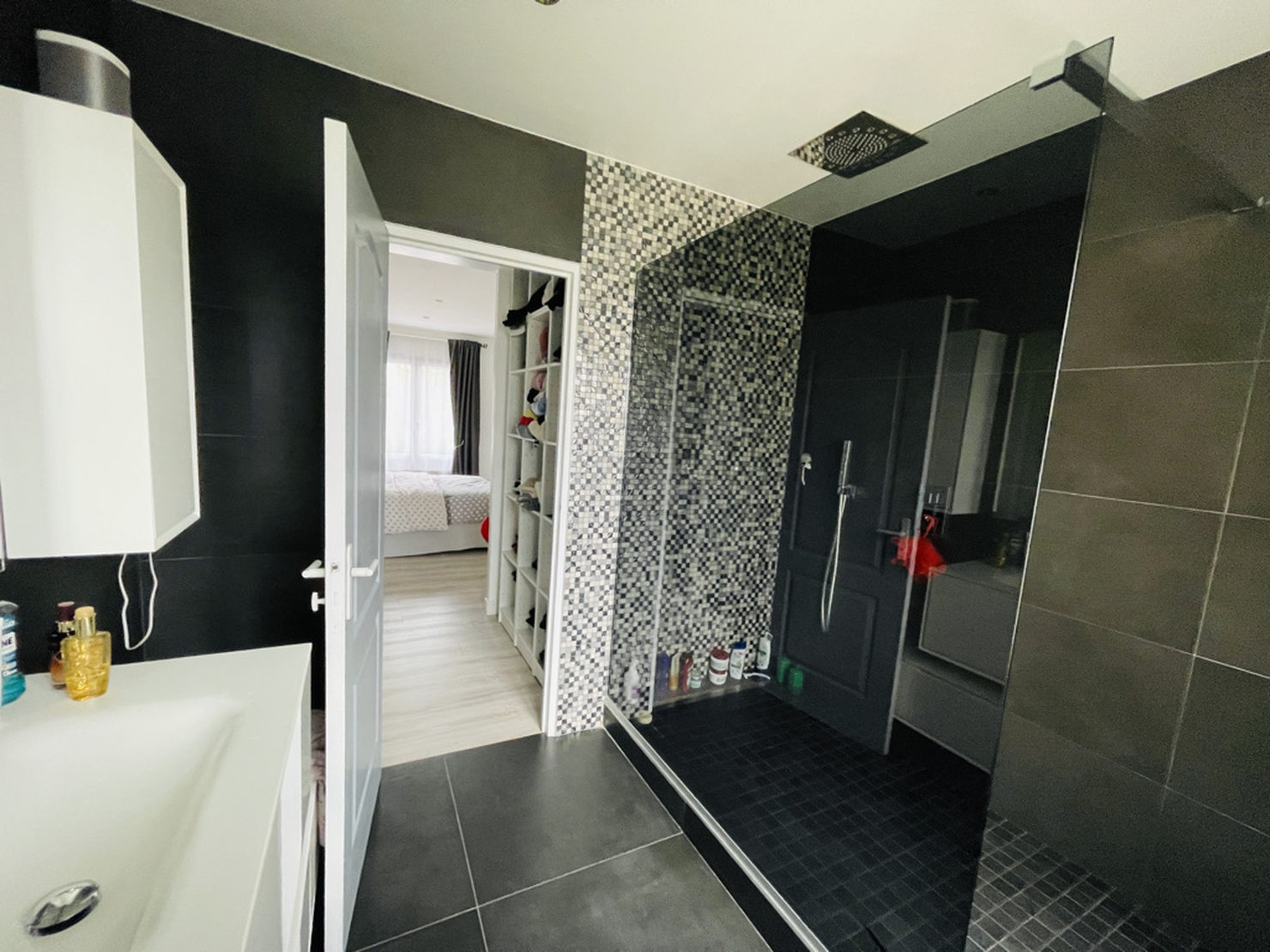 Entrée cathédrale, séjour salon cheminée avec cuisine US équipée (60m2) sur grande terrasse (45m2 sud ouest), bureau, wc. Au 1er : suite parentale avec salle d’eau douche à l’italienne et dressing (30m2), une chambre, un dressing, salle de bains, wc. Au 2ème : suite parentale avec salle d’eau wc et bureau. Sous sol total : garage 2 voitures, salle de sport ou salle de jeux (30m2). Terrain 538 m2.