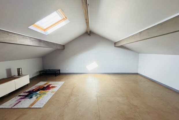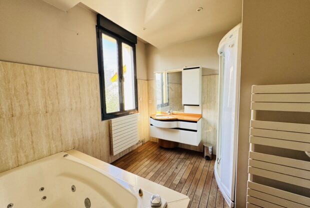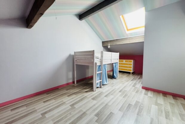Maison de 123 m2 : Entrée, séjour salon (32m2), cuisine équipée avec cellier ( 14,5m2), une chambre (16m2), salle de bains + douche,wc. Au 2ème : 2 chambres (28-17 m2). Sous sol total : grand garage avec grande hauteur pour mettre une camionnette