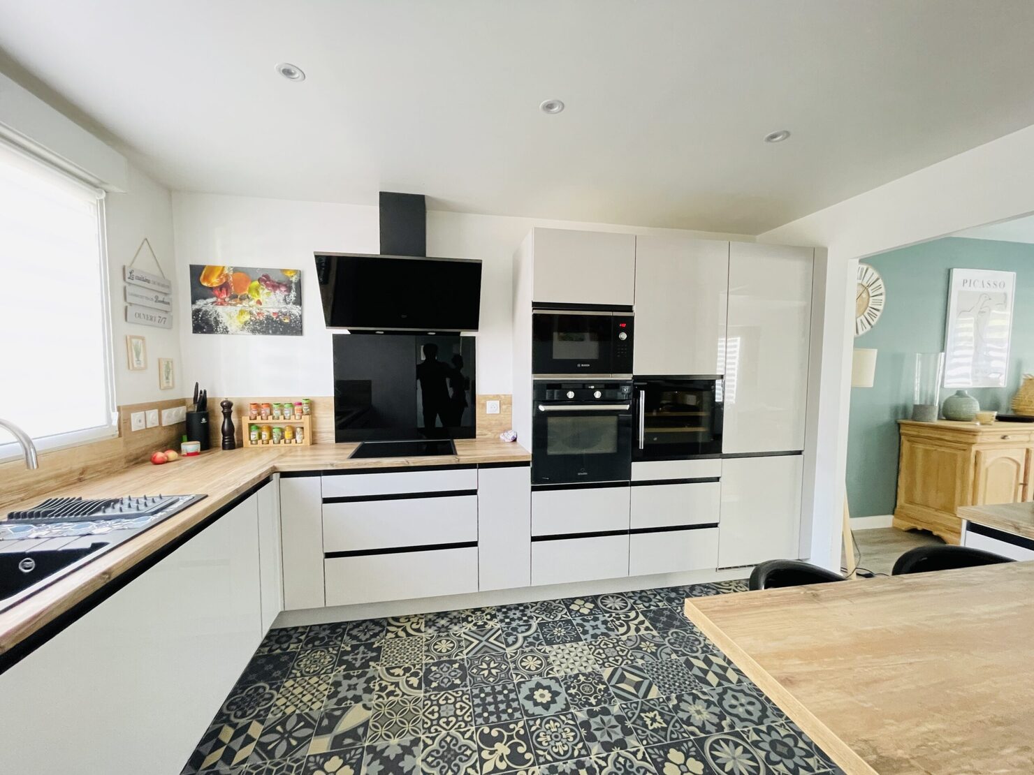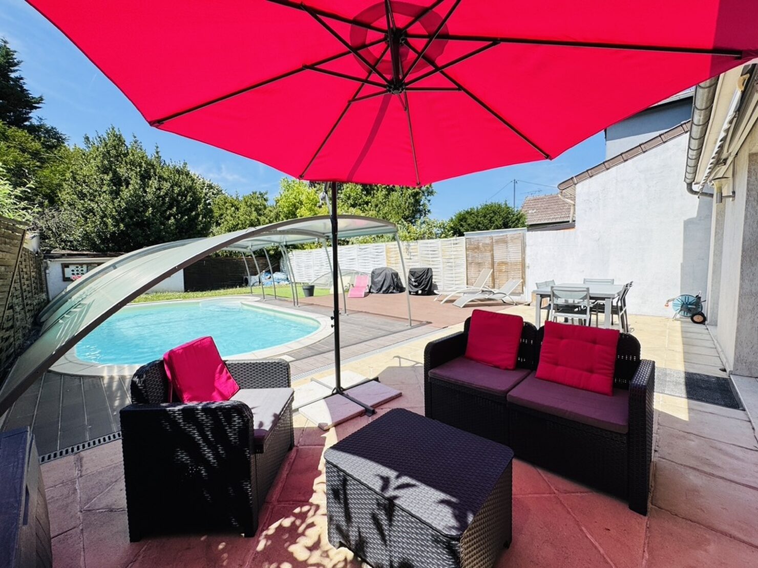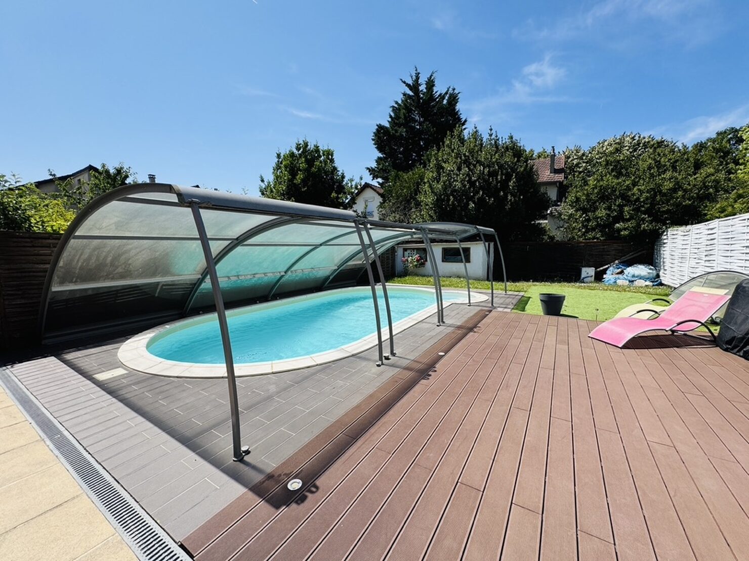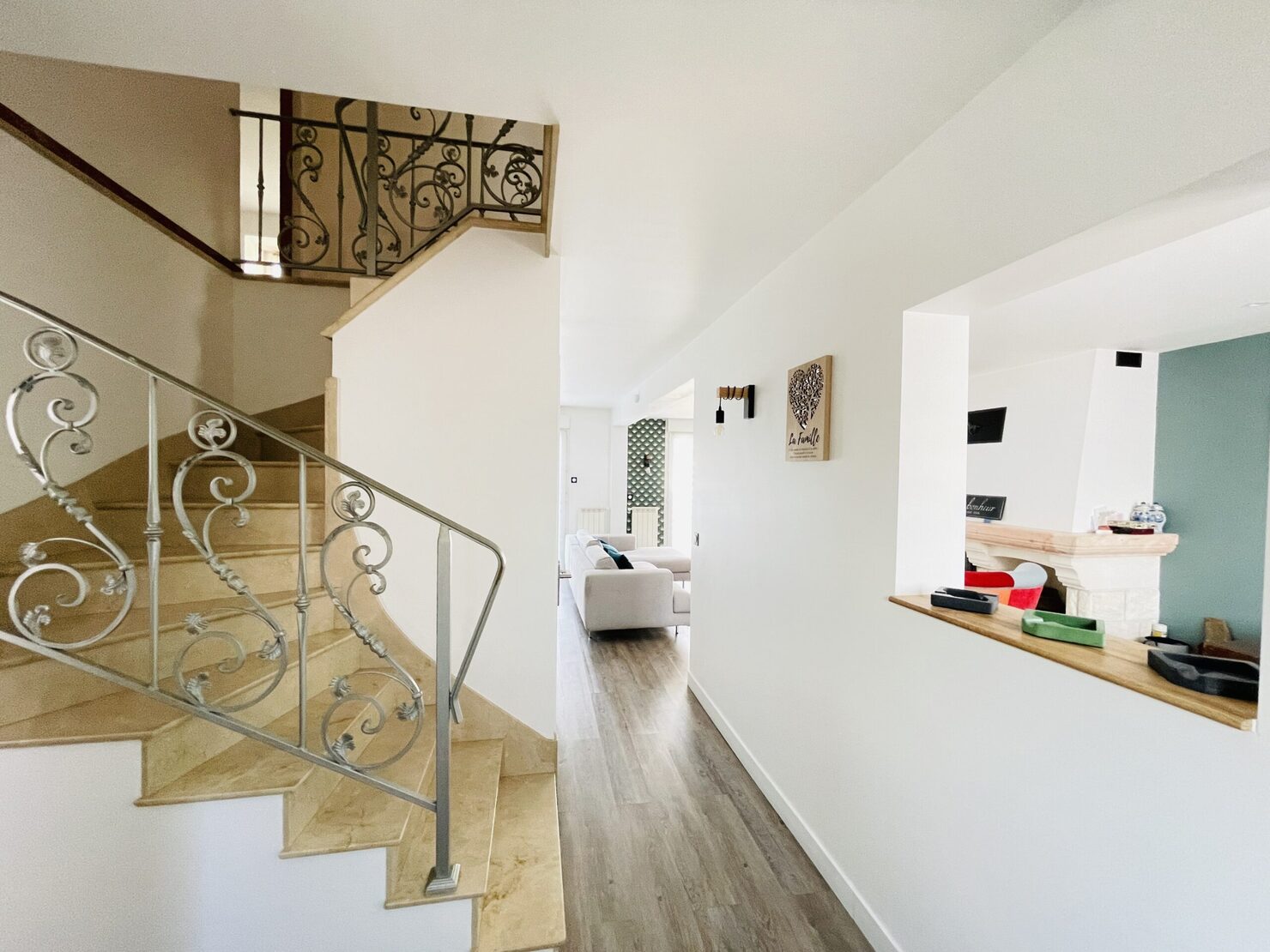 entrée, séjour salon cheminée (48m2) avec cuisine US équipée donnant sur terrasse, jardin et piscine chauffée sud et sans vis à vis (8 x 4 m), wc. Au 1er : suite parentale avec salle de bains (24m2), 2 chambres, buanderie avec dressing, salle d’eau avec douche à l’italienne wc. Terrain 371 m2, accès 3 voitures.