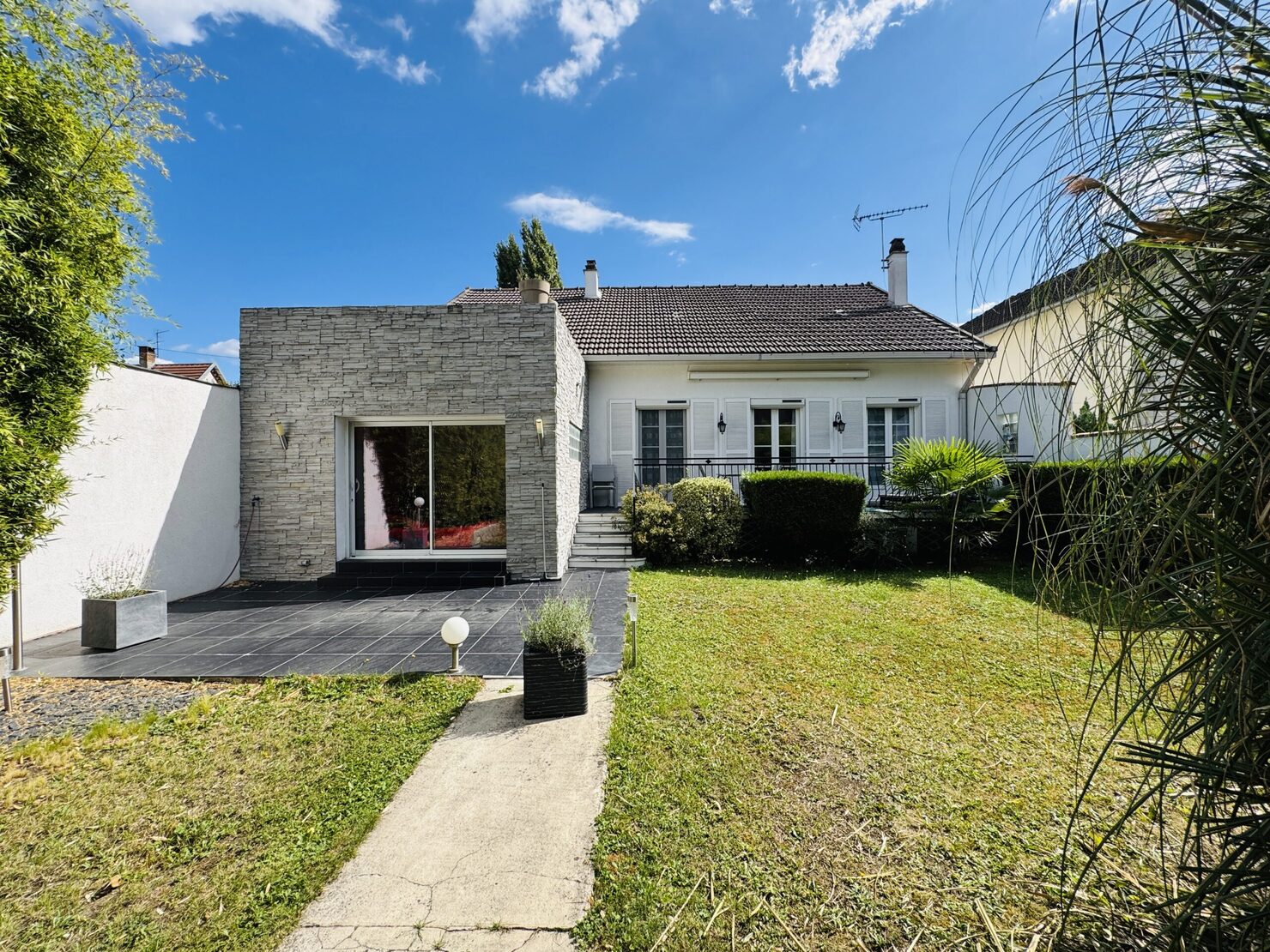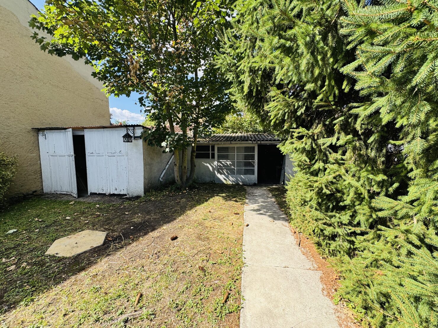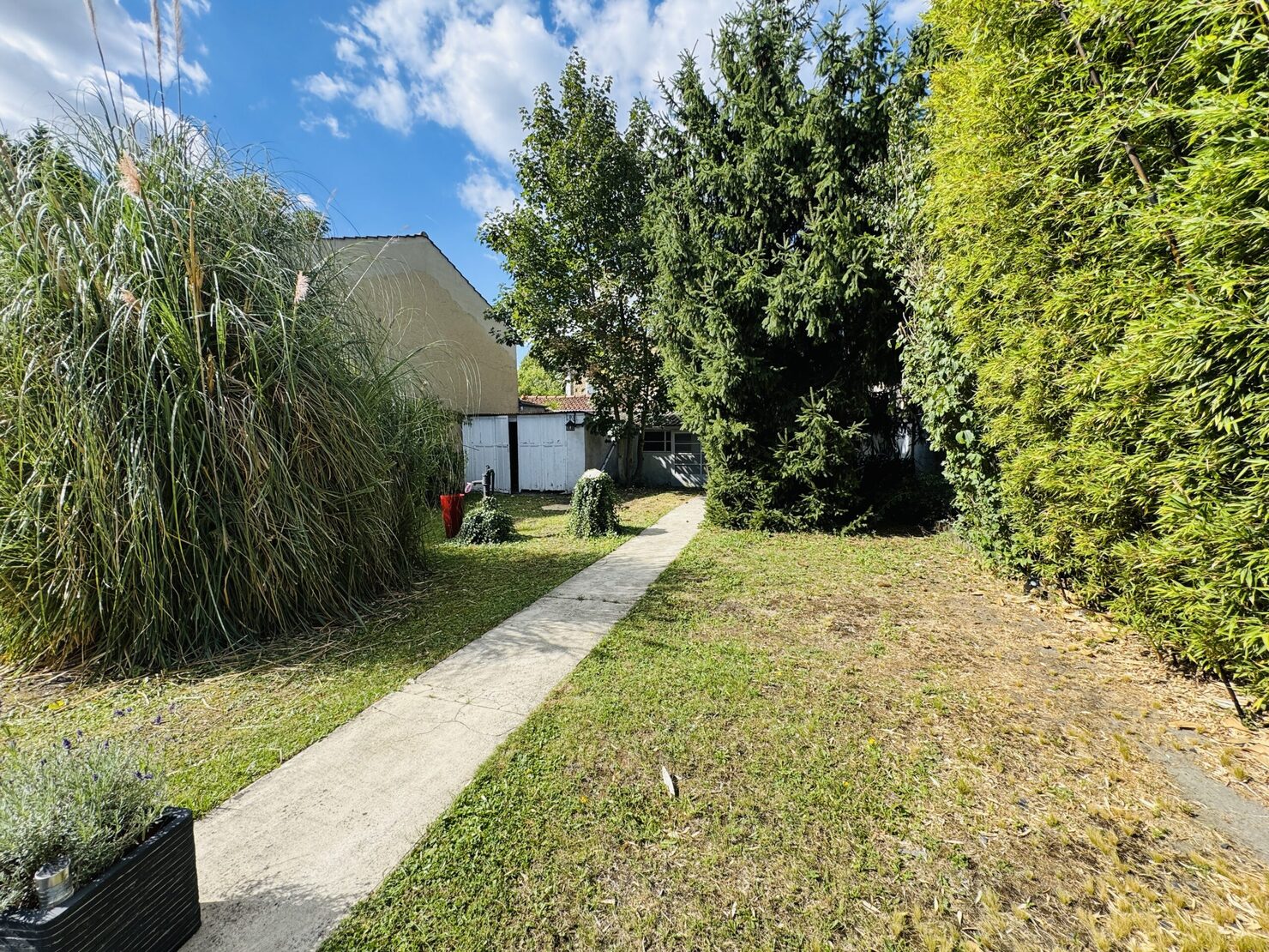 PLAIN PIED avec comble aménageable et dalle béton ( possibilité de doubler la surface de la maison ) : entrée, séjour salon (33m2) sur terrasse et jardin ( sud et sans vis à vis ), cuisine équipée, 2 belles chambres (14-13 m2), un bureau, salle d’eau avec douche à l’italienne wc, buanderie, wc, garage 1 voiture, dépendance en fond de parcelle, terrain 548 m2