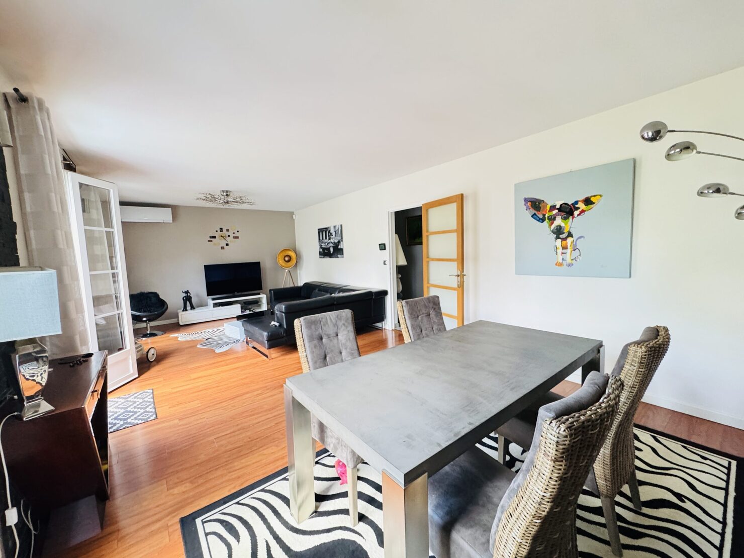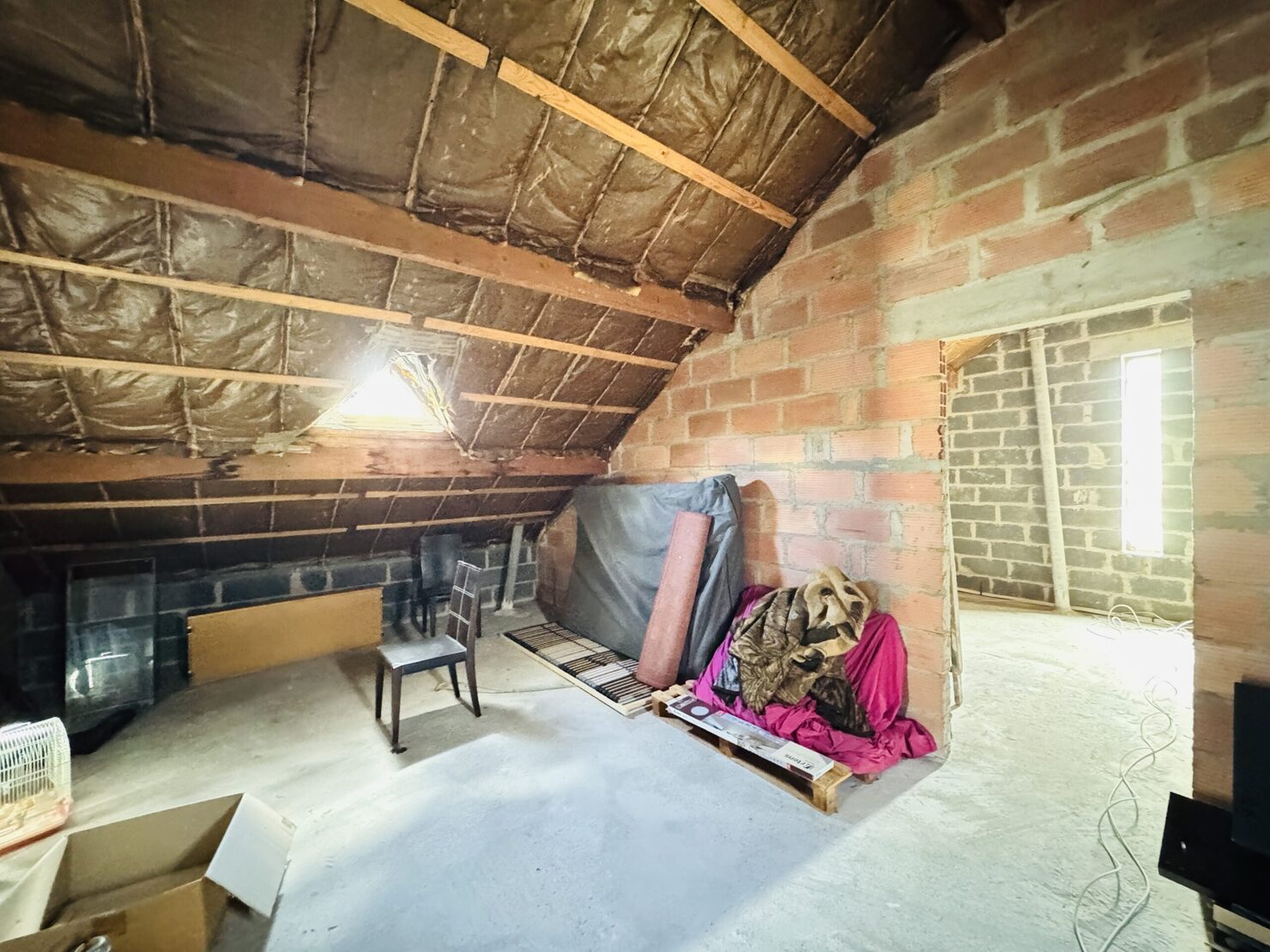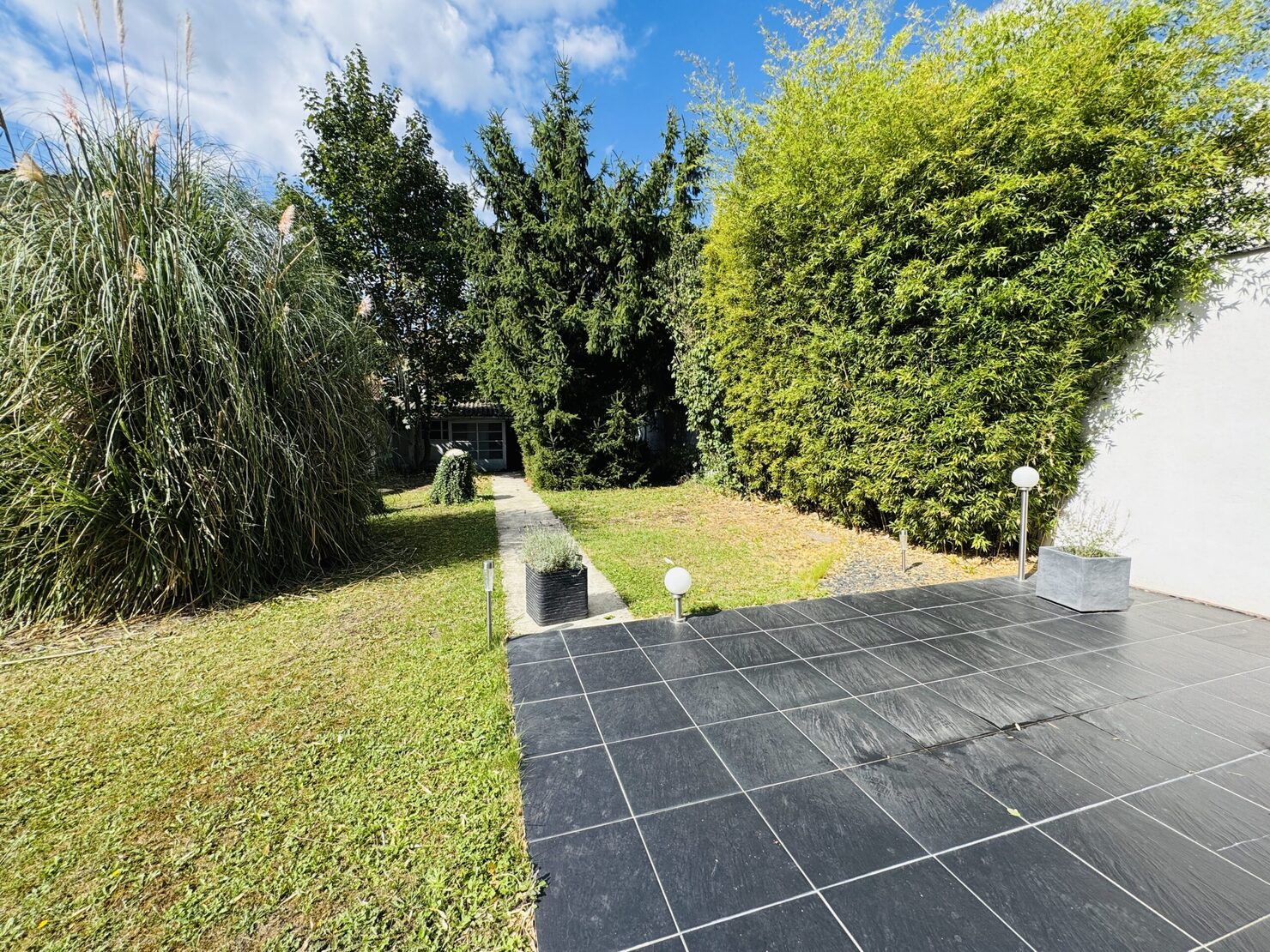 PLAIN PIED avec comble aménageable et dalle béton ( possibilité de doubler la surface de la maison ) : entrée, séjour salon (33m2) sur terrasse et jardin ( sud et sans vis à vis ), cuisine équipée, 2 belles chambres (14-13 m2), un bureau, salle d’eau avec douche à l’italienne wc, buanderie, wc, garage 1 voiture, dépendance en fond de parcelle, terrain 548 m2